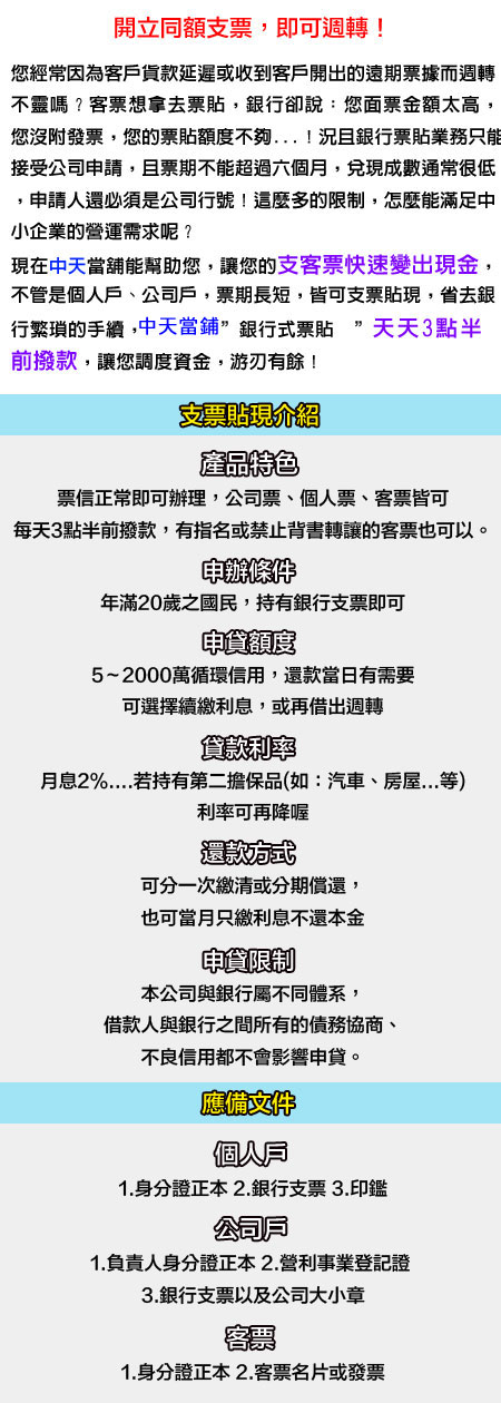 申辦淡水支票借款,新莊支票借款,板橋支票借款,中和支票借款,永和支票借款迅速取得現金!