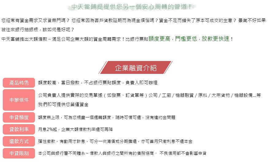 版權所有©中天當舖本公司合法授權任意複製版權必究